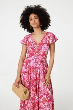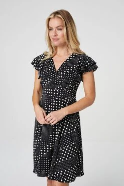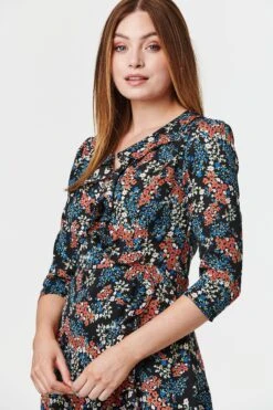 Add a vibrant skater dress to your closet with this ditsy printed mini dress. With a high round neck, semi sheer 3/4 sleeves, a drawstring waist and a tiered short skirt. Style with silver strappy heels for an evening out or pair with low heels for a daytime invite.