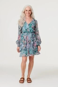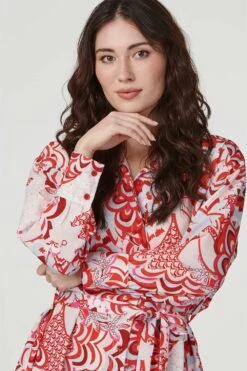 Add a figure flattering shirt dress to your collection with this ditsy print midi style. With a v-neck, classic collar, long sleeves, a button front, a removable tie detail belt and an a-line midi skirt. Style with trainers for a comfortable everyday outfit or dress up with blush heels for a formal daytime look.