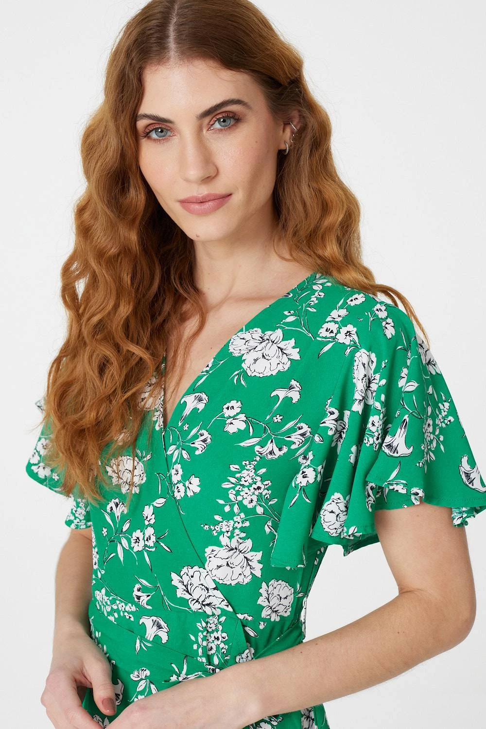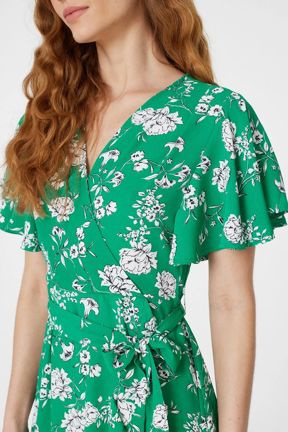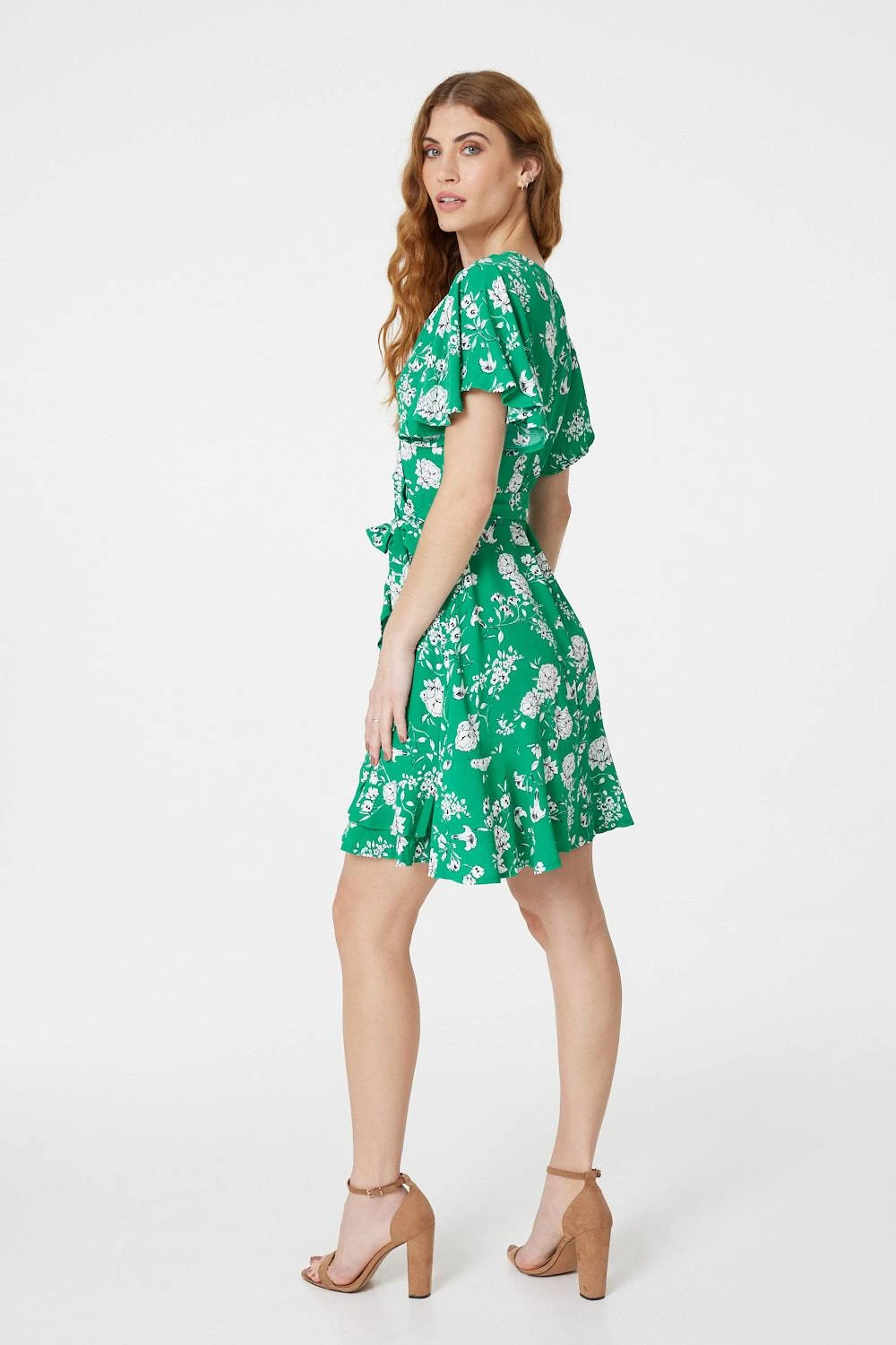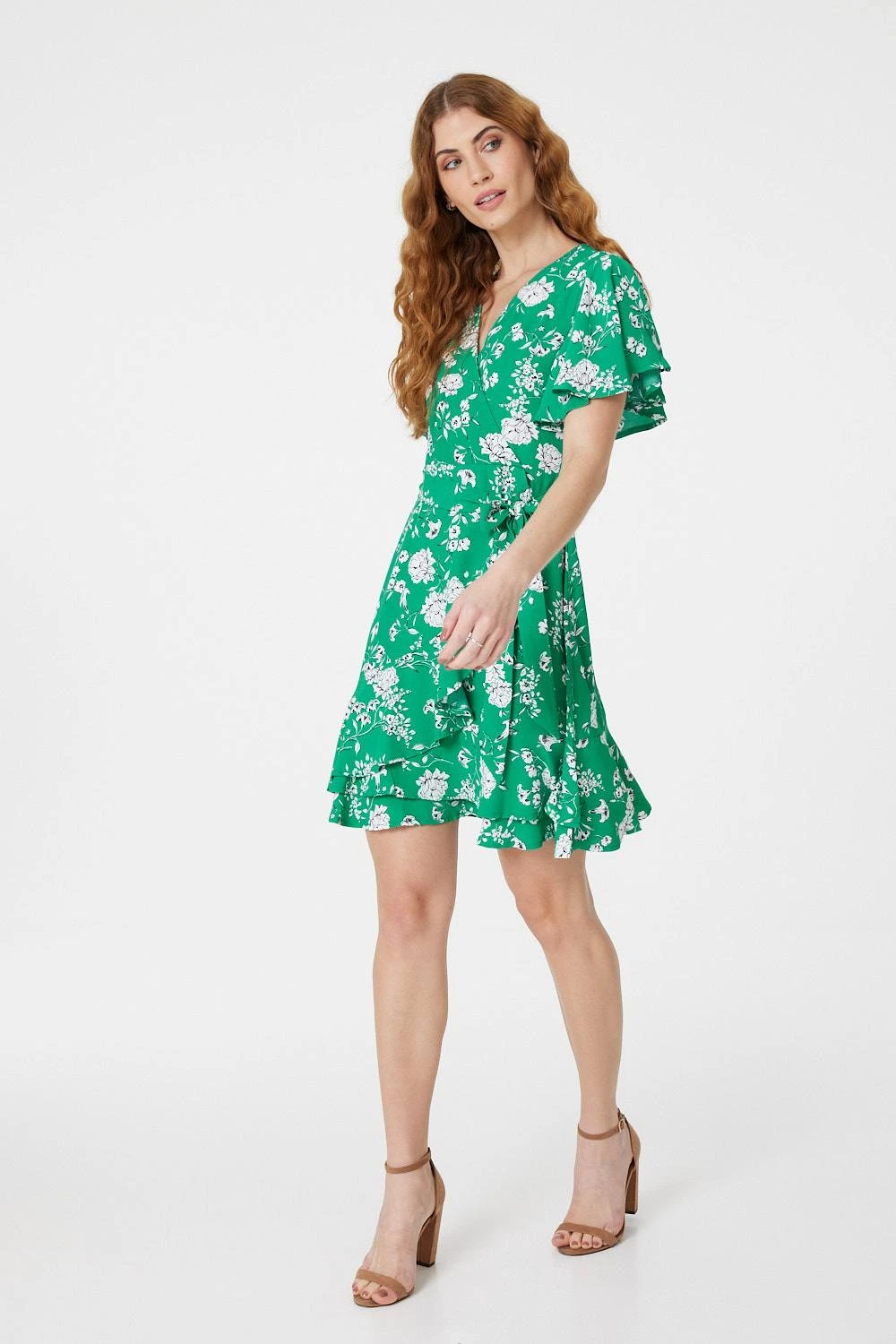 Every collection needs the perfect day to night wrap dress like this floral printed style. With a wrap front, a v-neck with a popper fastening, short angel sleeves, a tie detail waist and a short pephem skirt. Pair with nude heels for a date night look or style with flat sandals for the daytime.