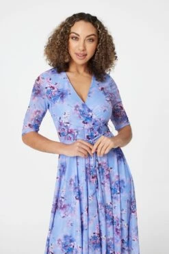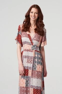 Add a striking empire silhouette to your dress collection with this floral maxi dress. Made from 100% viscose, it has a V-neck, 3/4 sleeves with a tie detail and a tiered maxi length skirt. Pair with heeled espadrille sandals or flats for a stylish warm weather look.