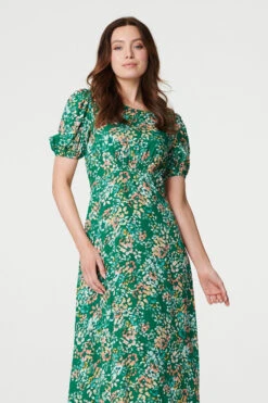 Your new season closet needs a flattering floral tea dress like this midi. With a round neck, short puff sleeves, a smocked waist, a straight skirt with a side split detail and knee length fit. Dress up for a daytime event with nude heels.