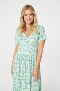 No warm weather closet is complete without a floral print sun dress like this vibrant v-neck style. With frilled cap sleeves, a v-neck, button front, pockets and a short flared skirt sitting above the knee. Style with flat sandals and cross body bag for an effortlessly comfortable daytime outfit.