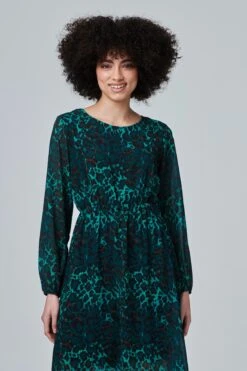 Make a statement in this vibrant leopard print wrap dress. It has a v-neck, wrap front, a self-tie waist detail, 3/4 sleeves and an a-line midi length skirt. Made in a non-iron stretch jersey fabric, it’s a great grab and go outfit. Pair with elegant closed-toe heels for a sophisticated occasion wear style.