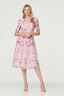 For a flattering fit that will accentuate your waist, choose this stylish midi dress. It has an elasticated square neck, 1/2 batwing sleeves and a fit & flare shape that will flatter your natural curves. It’s perfect for a day at work, an dinner out or a relaxed evening on holiday.