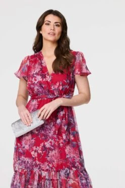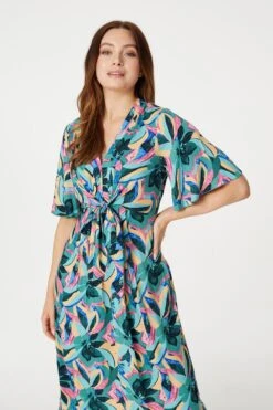 Add a bold print to your dress collection with this versatile tea dress. It has a round neck, short angel sleeves, a cinched waist and an A-line midi length skirt with a front split. Pair with neutral heels for an elegant style that’s great for a daytime occasion.