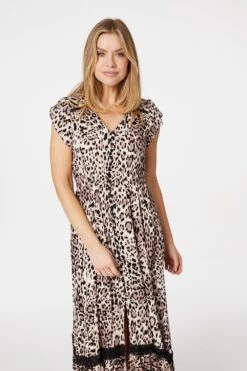 Elevate your workwear closet with this versatile shirt dress. It has a collar, v-neck, button front, 3/4 sleeves, a self-tie drawstring waist and a straight midi length skirt. Pair with heels or boots for a chic and professional style.