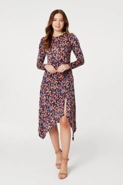 Printed Hanky Hem Midi Dress