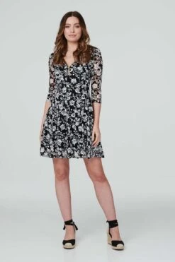 Add a statement making bodycon dress to your wardrobe with this striped style. Featuring a round high neck, puff detail shoulders, long sleeves, a keyhole back and an above the knee length. Style with strappy heels and a statement coat for a chic evening dinner look.