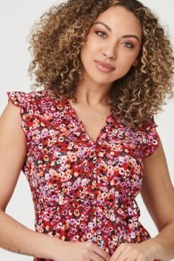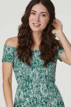No closet is complete without a bold tie dye printed maxi dress. With a square neckline, cap sleeves, a smocked bodice and a straight maxi skirt. Style with heeled wedges and a denim jacket for the ultimate daytime casual outfit.